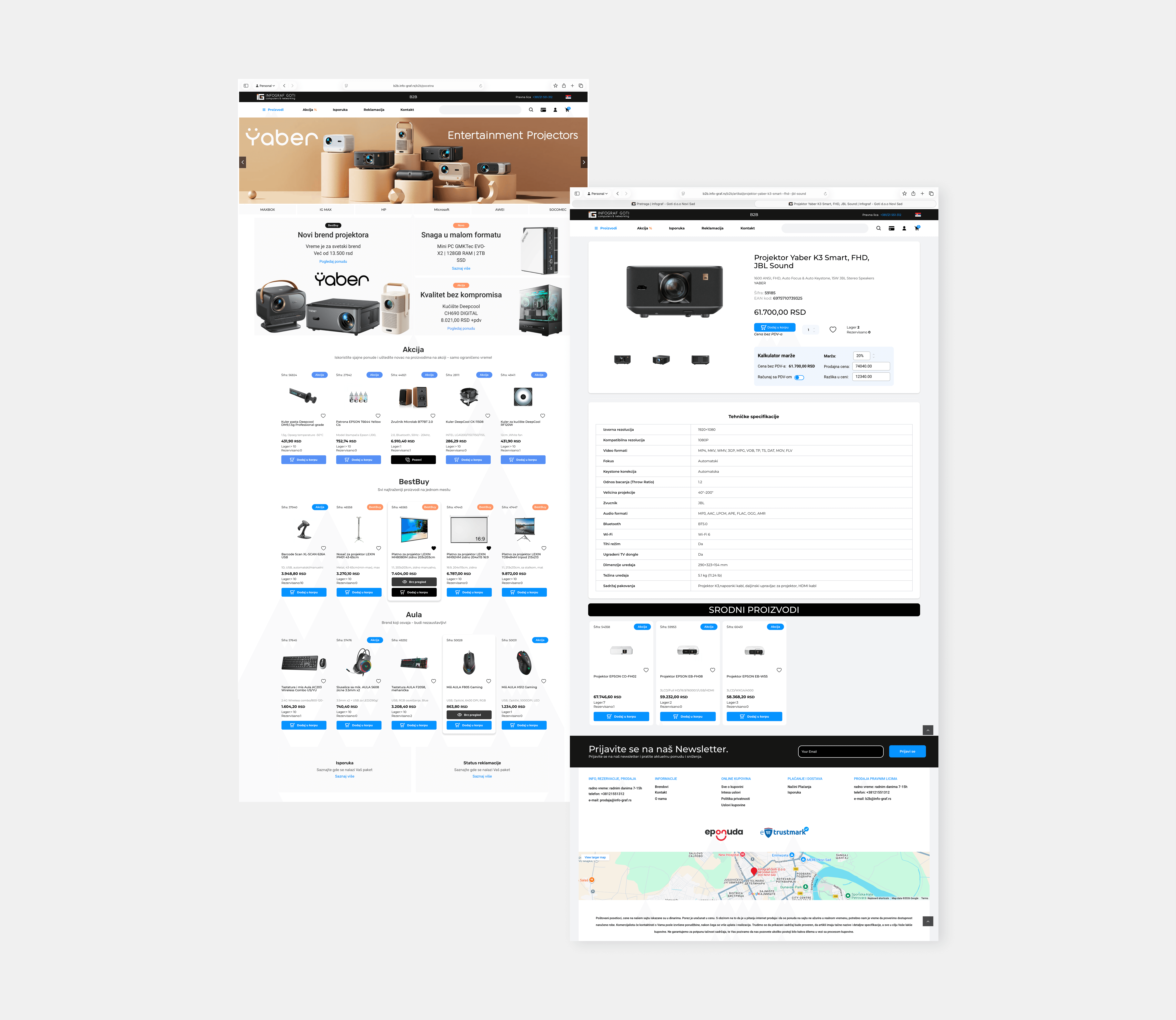 A comprehensive web design solution for Infograf Goti, featuring tailored interfaces for both B2B and B2C sectors. The project focuses on a seamless user journey that balances professional corporate requirements